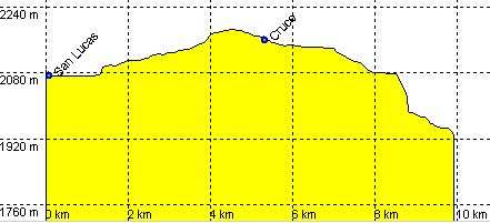 La ruta comienza en el parqueo tradicional de San Lucas, frente al mercado. Desde aquí la misma carretera asfaltada continúa hasta una bifurcación inconfundible que divide el camino de izquierda a derecha. El desvío hacia la derecha lleva directo al comienzo de un corto ascenso, hacia la izquierda.