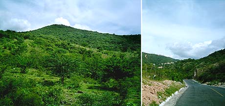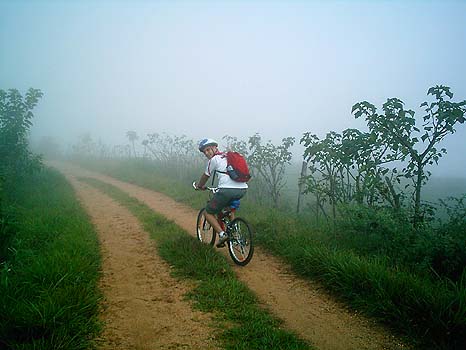 Gildardo y Alex en El MiradorRuta de descensoAl descender aproximadamente en el Km. 176 se encuentra la intersección donde se une la carretera asfaltada y la de terracería, al ingresar a esta última se comienza a vivir una nueva aventura, penetrar en el follaje que todavía existe en nuestras montañas y gozar de 4Km. de carretera de terracería que por el paso de estos 10 años ha quedado abandonada formándose únicamente una vereda la cual es perfecta para descender por la montaña, pasando por pequeños riscos que se forman con el paso del agua de lluvia, en donde alguna vez fluyó algún pequeño riachuelo.