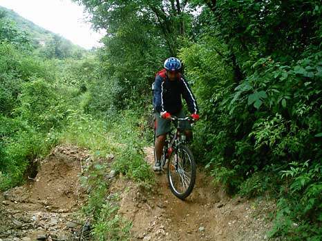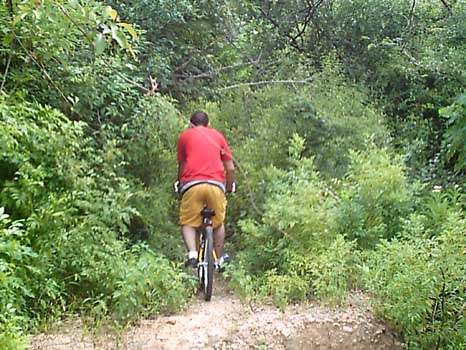 Alex en el descenso.Los Cortes de tierra se tornan perfectos para saltar y esquivar con la velocidad alcanzada durante el viaje, piedras, arena, caminos, pueblecitos toda una verdadera aventura hasta llegar nuevamente a la aldea Canaan en donde se une nuevamente el asfalto a la terracería y de ahí a la ciudad de Chiquimula.