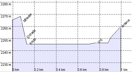 El tramo comienza al llegar al mirador, desde el cual, unas gradas con troncos descienden al inicio de la ruta. Desde ahi el recorrido te lleva por un angosto sendero entre árboles hasta salir al ascenso que lleva a la antena en lo alto. Para que no te asustes, aquí te mostramos el brief de altitud de la ruta (y te calcules el ascenso/descenso). La altitud está en metros sobre el nivel del mar. Como puedes ver, es una ruta sin mucha dificultad.