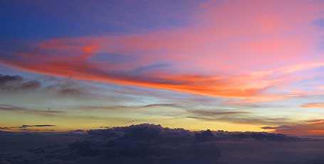 Típico colorido celaje visto desde la cima del Acatenango.Dificultad del ascenso
