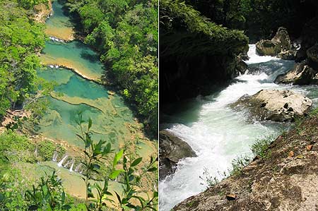 Refrescantes aguas nos esperaban. Me dijo que de Cobán se tomaba la carretera al Atlántico como yendo para San Pedro Carcha y que esa carretera me llevaría directo a Semuc Champey. Cuando el microbús se detuvo, todos empezamos a ver por la ventana, queriendo alcanzar con la vista la belleza de Semuc Champey.